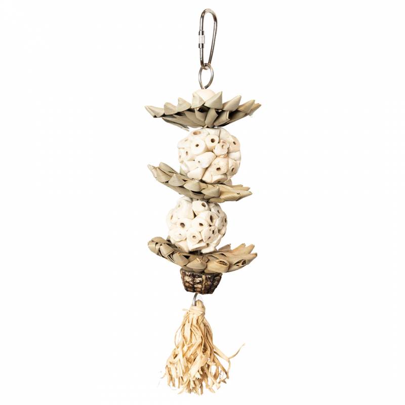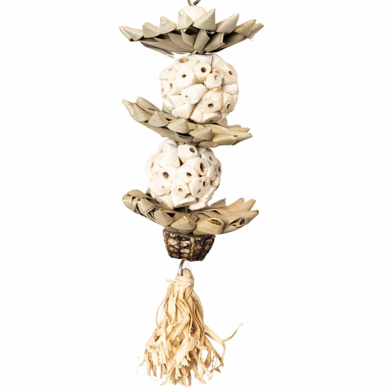 Juguete 100% natural compuesto por bolas de raíz de yucca, palma y caoba.